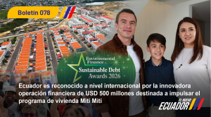 Ecuador es reconocido a nivel internacional por la innovadora operación financiera de USD 500 millones destinada a impulsar el programa de vivienda Miti Miti