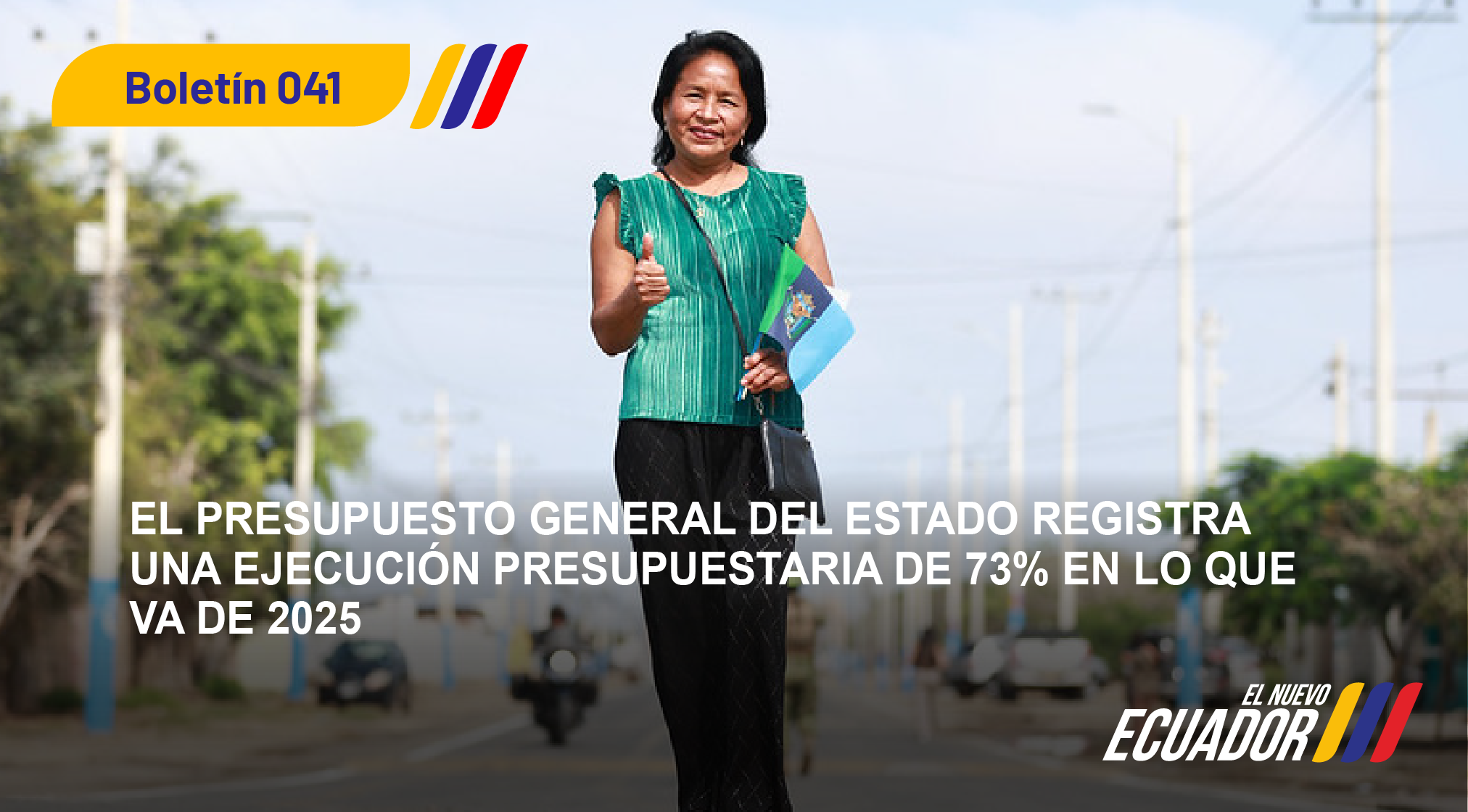 El Ministerio de Economía y Finanzas informa que el Presupuesto General del Estado alcanzó una ejecución presupuestaria del 73% en el periodo enero – noviembre de 2025, de un presupuesto total de alrededor de USD 41.100 millones.