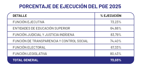 El Presupuesto General del Estado registra una ejecución presupuestaria de 73% en lo que va de 2025