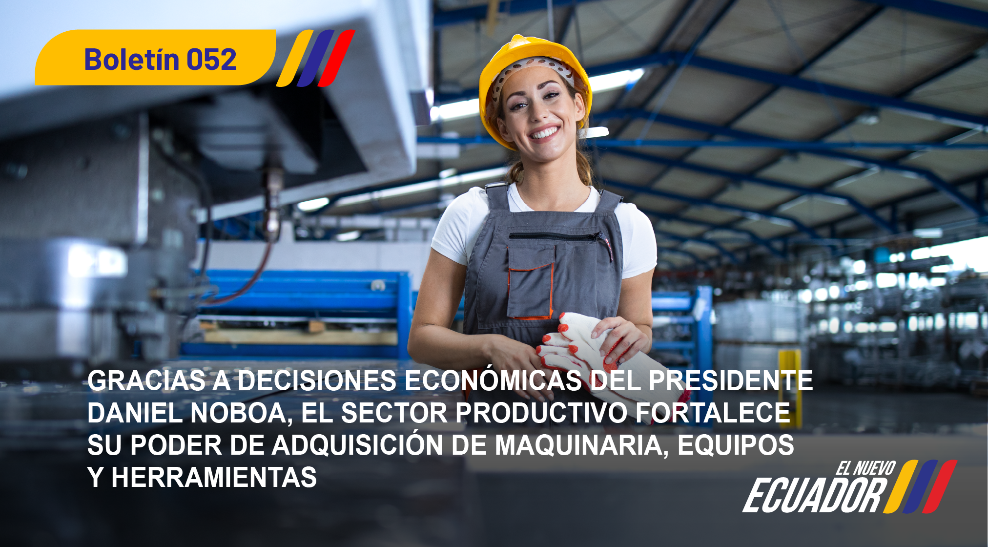 GRACIAS A DECISIONES ECONÓMICAS DEL PRESIDENTE DANIEL NOBOA, EL SECTOR PRODUCTIVO FORTALECE SU PODER DE ADQUISICIÓN DE MAQUINARIA, EQUIPOS Y HERRAMIENTAS