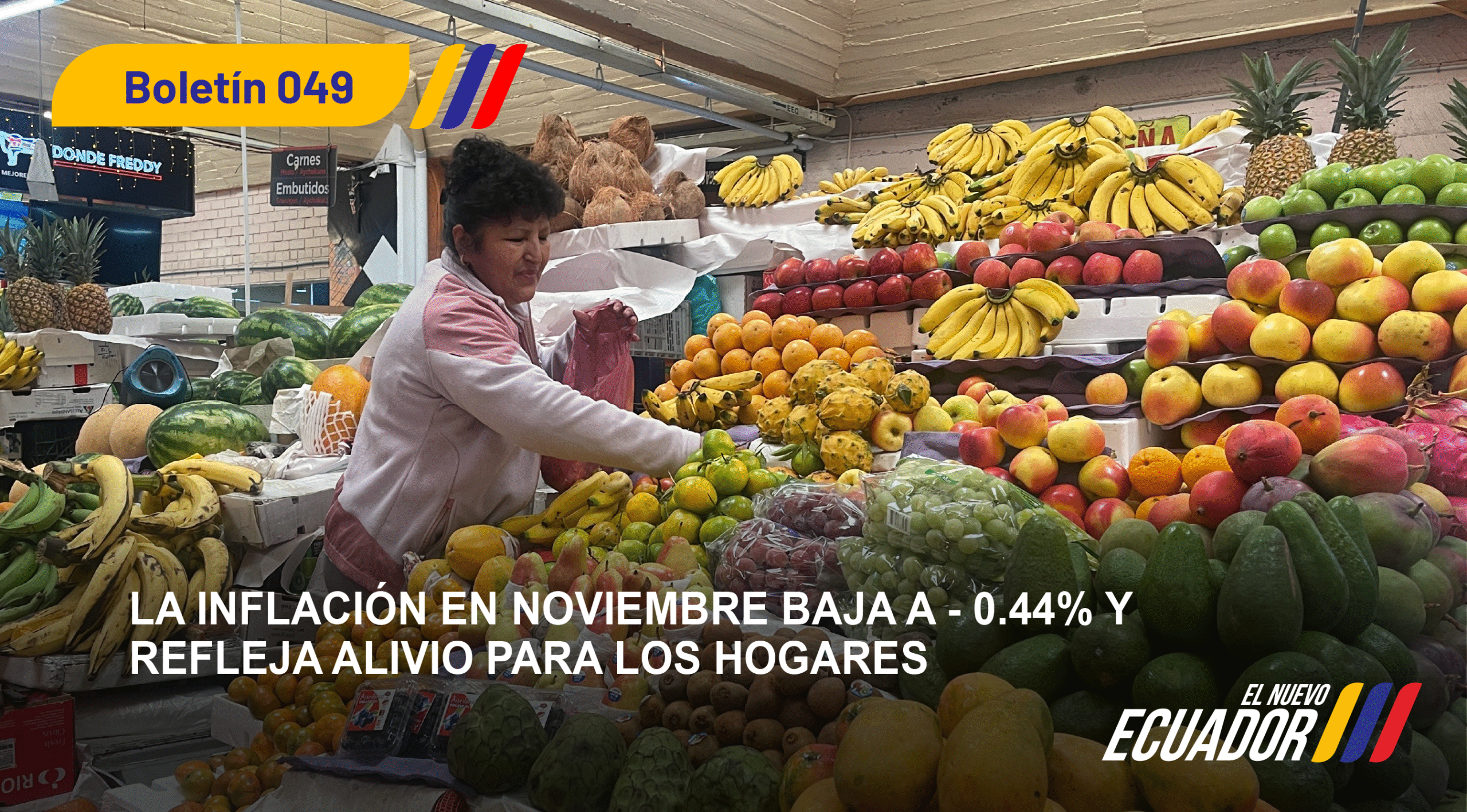 La inflación mensual de noviembre de 2025 fue de -0,44%, una reducción significativa que se traduce en un alivio directo para los bolsillos de las familias ecuatorianas. Este registro confirma que Ecuador continúa manteniendo una inflación baja y estable, muy por debajo de la de otros países de la región.