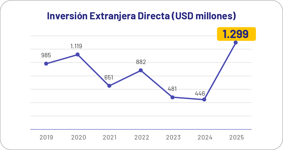 Ecuador consolida su recuperación económica y mejora su posicionamiento en el mundo. En 2025, la Inversión Extranjera Directa (IED) alcanzó USD 1.299 millones, lo que representa un crecimiento del 191% frente a 2024 y del 170% en comparación con 2023. Este resultado refleja un cambio claro: hoy el país atrae más capital, más oportunidades y más desarrollo.